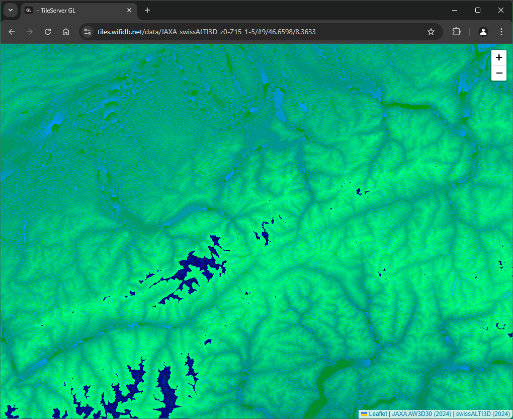 Description: Mapbox TerrainRGB z0-Z15 generated from the swissALTI3D 2024 raster-dem merged with the JAXA AW3D30 raster-dem.