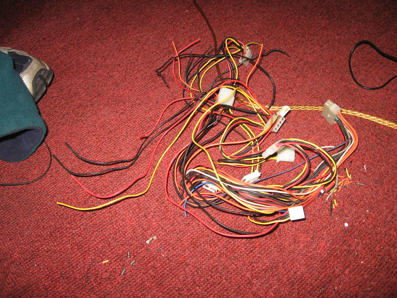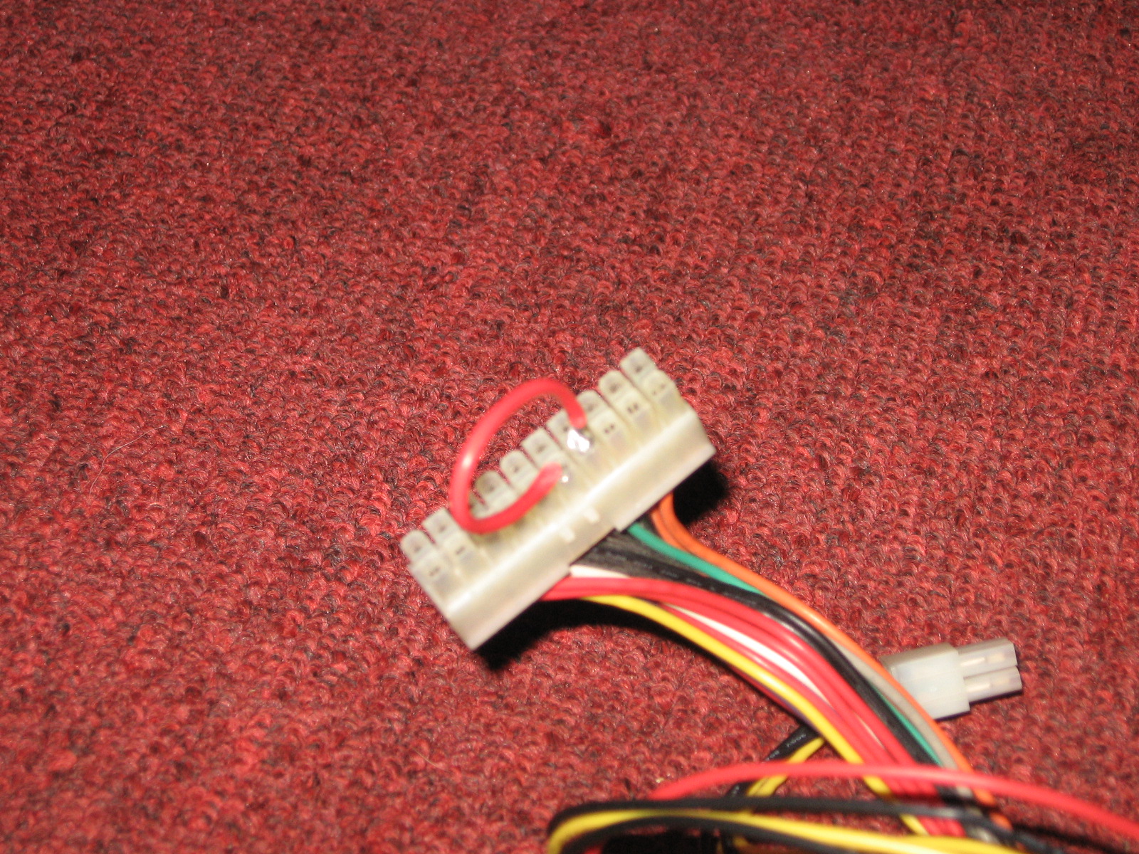 After our initial test we got rid of the unnecessary wires on the power supply. We need to keep the green wire (PS_ON), a yellow wire (+12), and a black wire (GND).